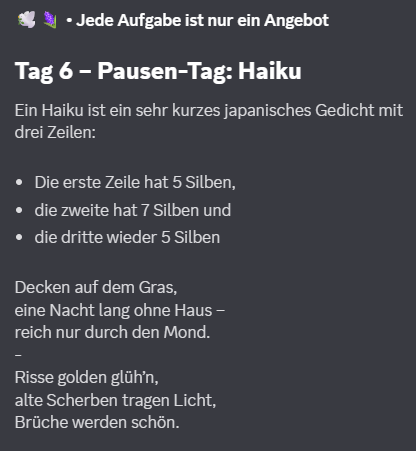 🫖 Tag 6 . Pausen-Tag: Haiku